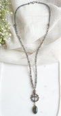 Christian Statement Including a Crown of Thorns, Cross, and Labradorite Sterling Silver Drop on a Labradorite Necklace