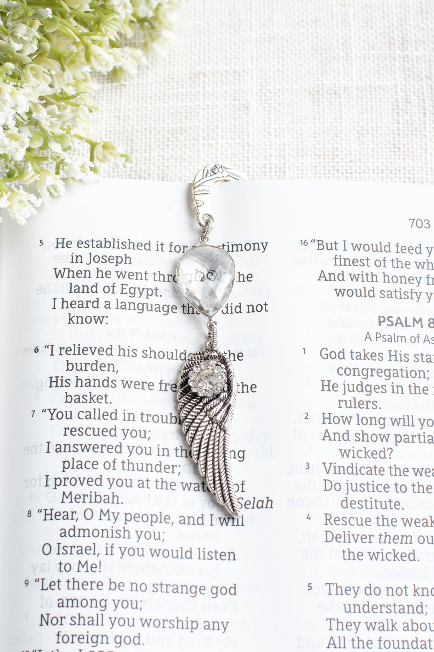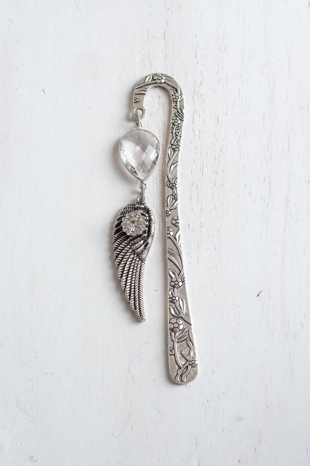 Angel Wing Charm on a Shepherd's Hook Custom Metal Bookmark with Crystal Drop