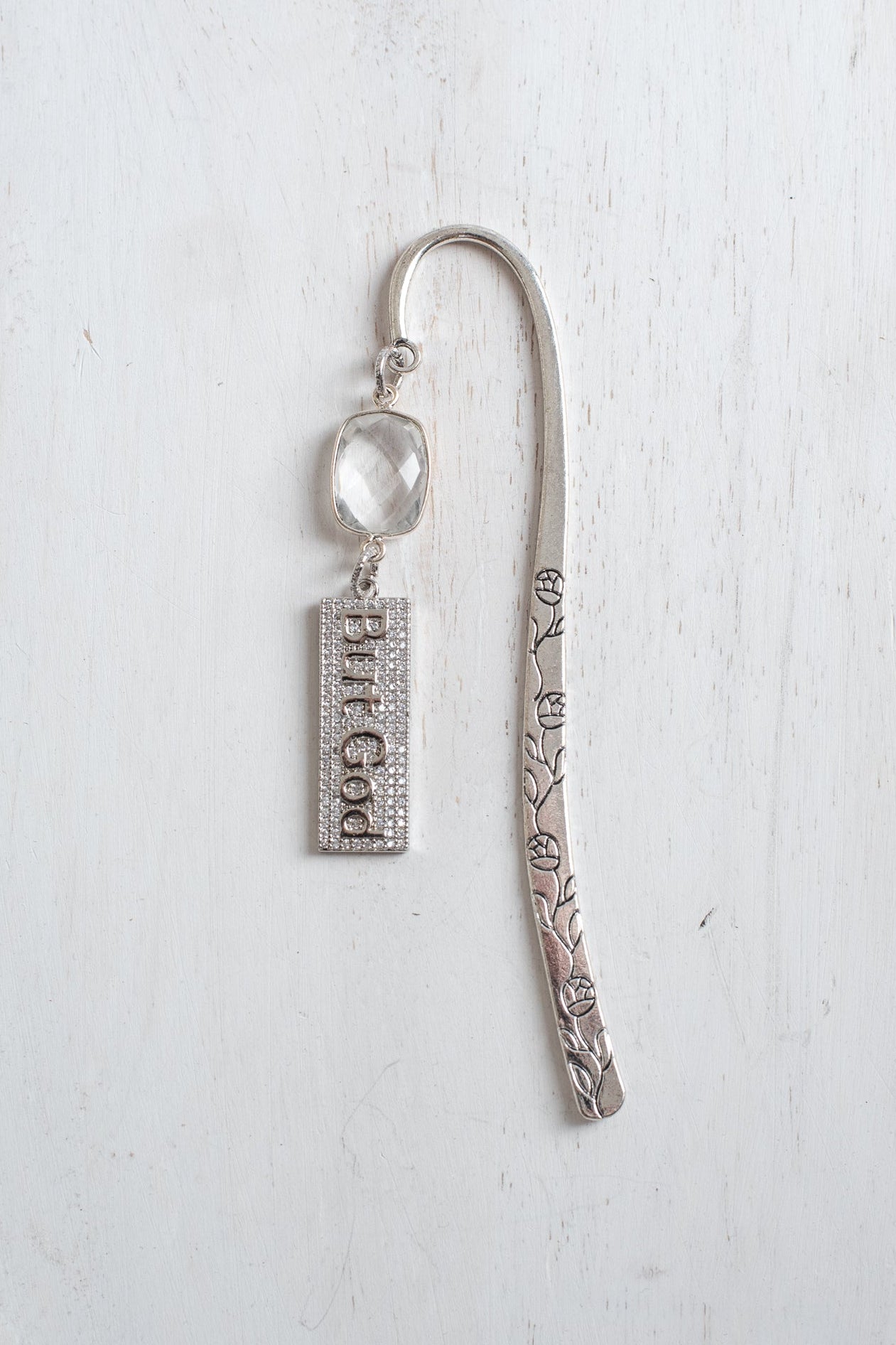 Micro Pave Crystal "BUT GOD" Christian Charm on a Custom Silvertone Shepherd's Hook Bookmark
