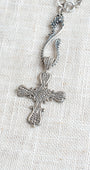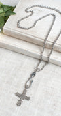 Sterling Silver Ornate Cross on Fancy Figure 8 Drop and Textured Silvertone Chain Necklace