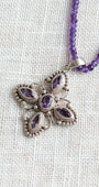 Sterling Silver Filigree Amethyst Cross Pendant on a Faceted Amethyst Strand Necklace