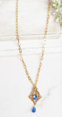 Vintage AVON Pendant with Royal Blue and White Rhinestones on a Gold Plated Paperclip Chain Necklace