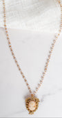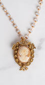 Vintage Signed "Florenza" Cameo Crown Brooch Pendant on Crystal Rosary Chain Necklace